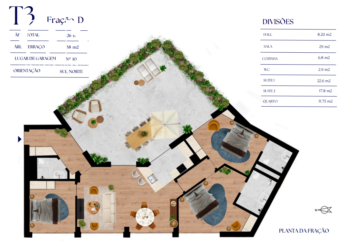 Terraço:58 m2